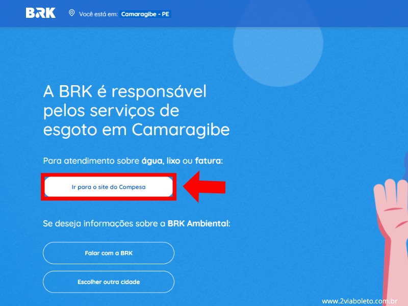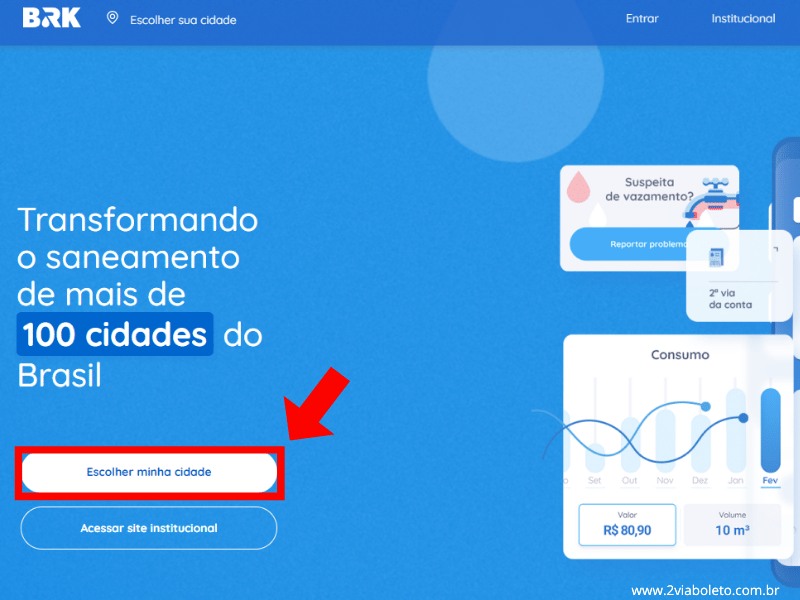 - Acesse o site da BRK e clique em “Escolher minha cidade”