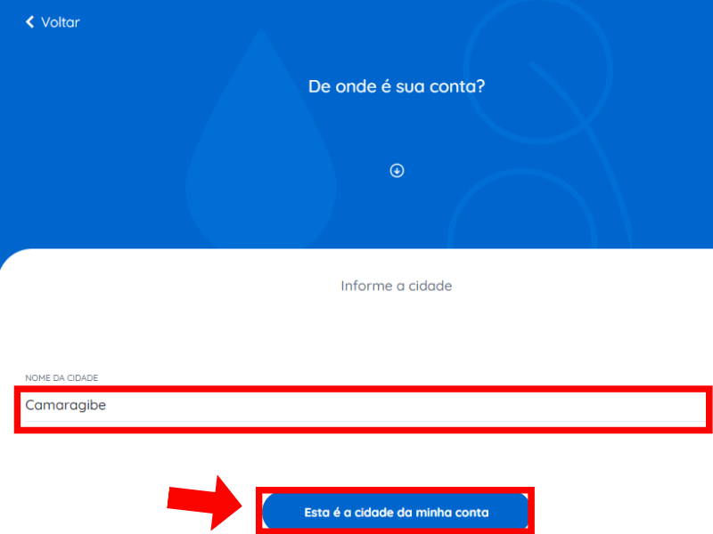 - Digite o nome da sua cidade e clique em “Esta é a cidade da minha conta”