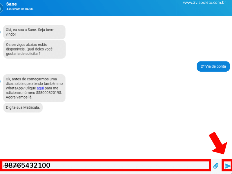 De forma prática você tem a possibilidade de solicitar sua segunda via pelo WhatsApp, basta adicionar o número (82) 98139-9892 para receber sua conta Casal.