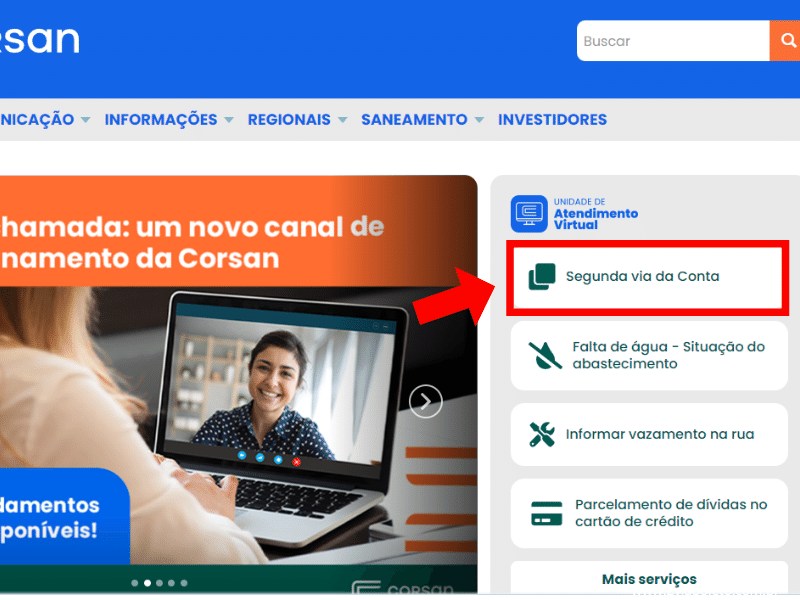 - Entrar no site, clicar na opção de “Segunda Via da Conta”