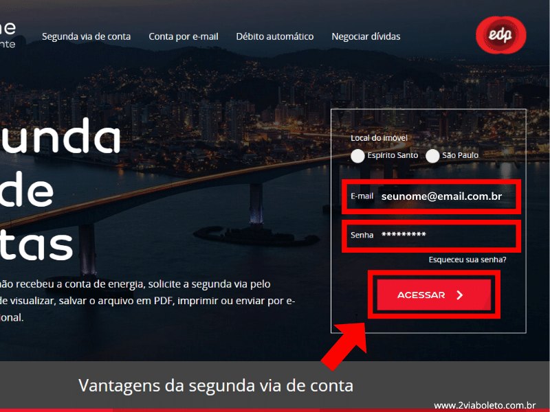 Neste caso você não vai precisar fazer nenhum cadastro, para isso você vai acessar o site da EDP, e no canto esquerdo clicar na opção “2ª via simplificada”, lá você só vai precisar informar o seu estado e o número de inscrição.