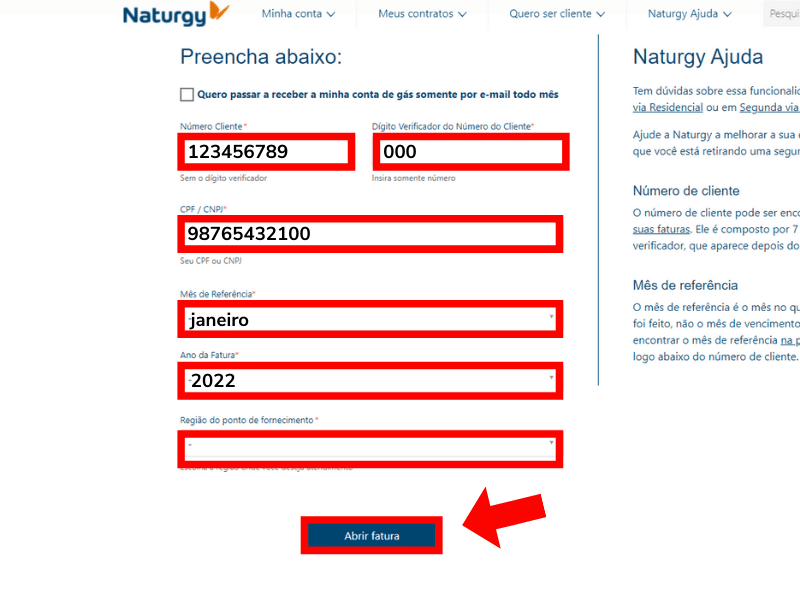 - Coloque todas as informações necessárias e aperte em “Abrir fatura”